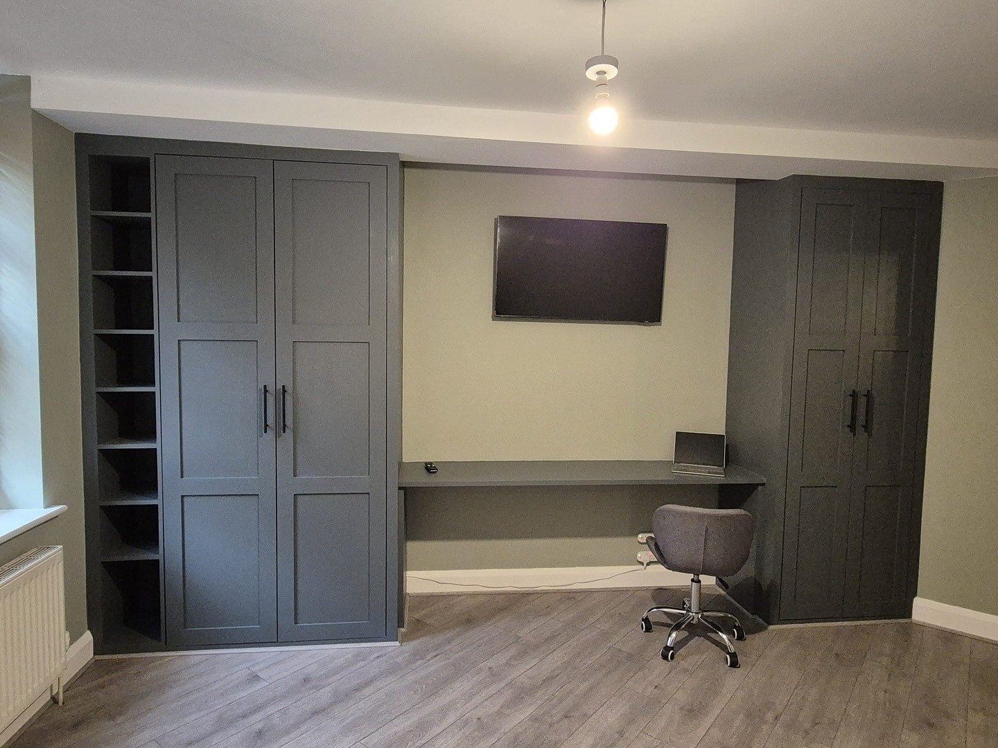 Yes, our carpentry services include custom-built shelving, wall panelling, dado rails, alcove units, and bespoke storage solutions. We design and build each piece to perfectly fit your space, as showcased in our portfolio of completed projects.